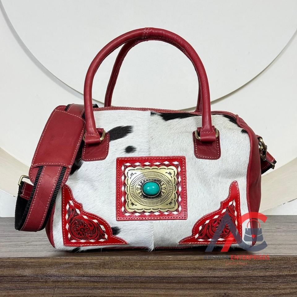 กระเป๋าหนังวัวแท้คุณภาพหรูหราสั่งทำพิเศษสไตล์ตะวันตก ขนาดกลาง ดีไซน์สวยงาม ตกแต่งด้วยมือ กระเป๋าถือผู้หญิงสุดหรูหรา กระเป๋าเดินทางทรงดัฟเฟิล