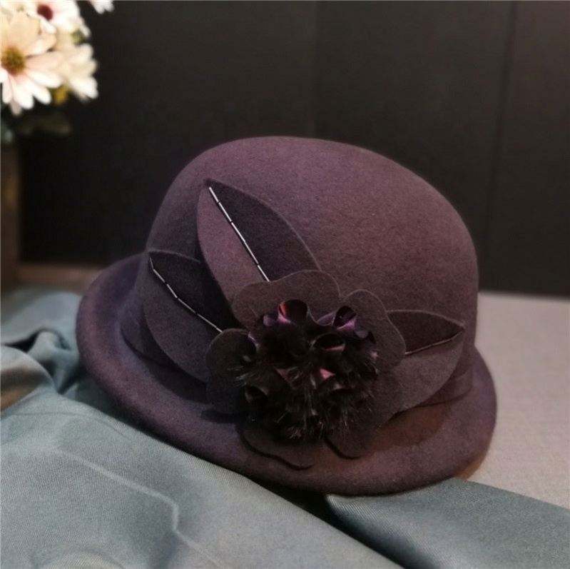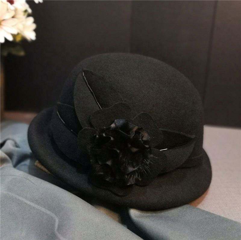 หมวกเบเร่ต์ขนสัตว์คุณภาพหรูหราสำหรับผู้หญิง หมวกทรงโคลช์สำหรับขี่ม้า หมวกโบว์เลอร์สำหรับโบสถ์ หมวกฤดูหนาวสำหรับงานพิธีการ ตกแต่งด้วยดอกไม้ เหมาะสำหรับงานปาร์ตี้