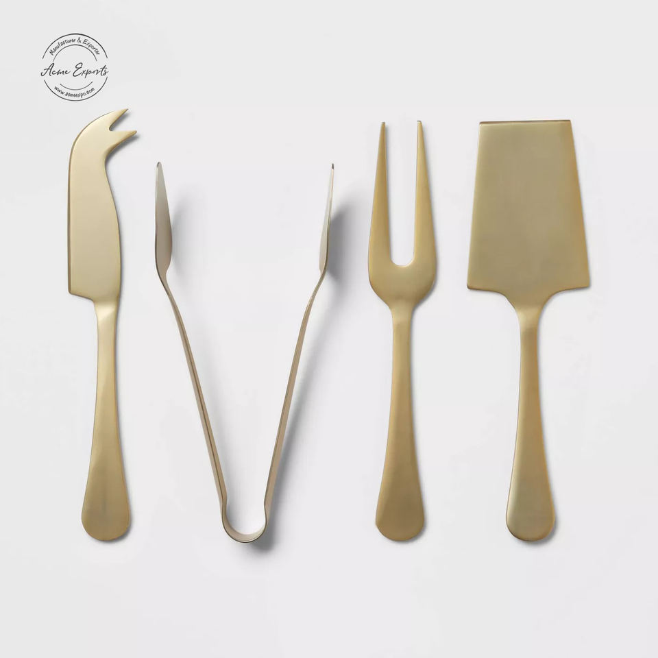 ชุดมีดทองเหลืองทำมือคุณภาพหรูหราพร้อมสีโรสโกลด์ใช้สำหรับเสิร์ฟร้านอาหารในโรงแรม