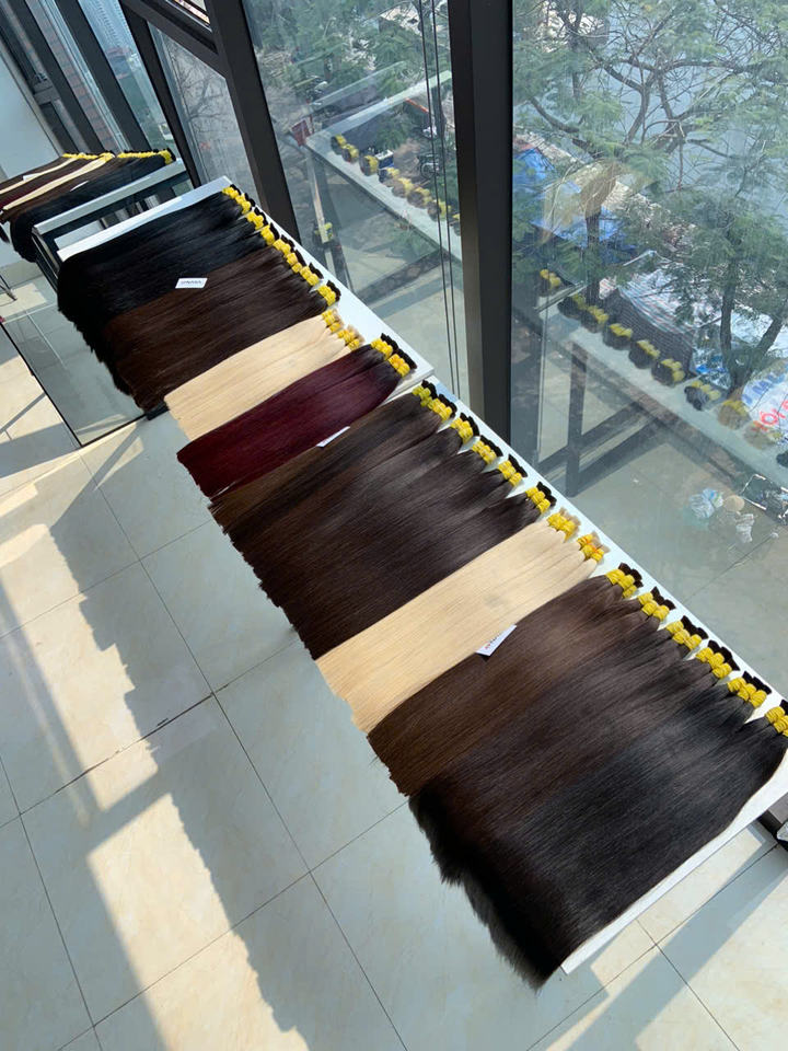 ผมต่อของมนุษย์บริสุทธิ์บริสุทธิ์เกรดเวียดนามสีอ่อนฟอกขาว