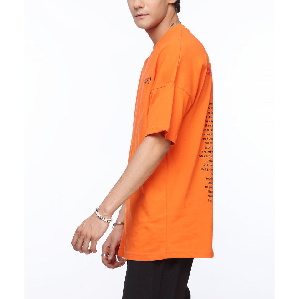 เสื้อยืดคอกลมผู้ชายผ้าคอตตอนไซส์ใหญ่พิเศษ, เสื้อยืดผ้าฝ้าย100% โอเวอร์ไซส์เปิดไหล่ปล่อยแน่นพิมพ์ลายว่างเปล่า