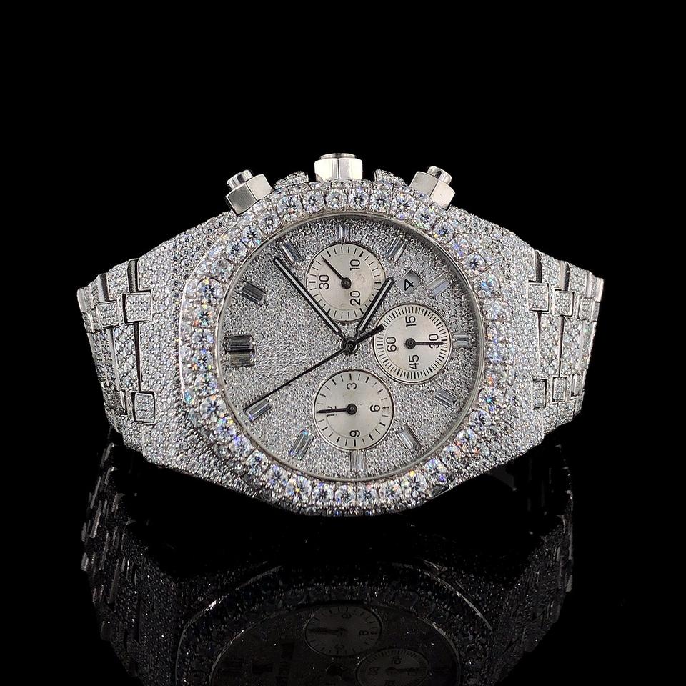 นาฬิกาควอตซ์หรูหราสไตล์สปอร์ต ประดับเพชรโมอิสซาไนต์ VVS1 ทรงเหลี่ยมบริลเลียนท์ แฟชั่นธุรกิจ ฮิปฮอป สายสแตนเลสสตีลแบบโบราณ