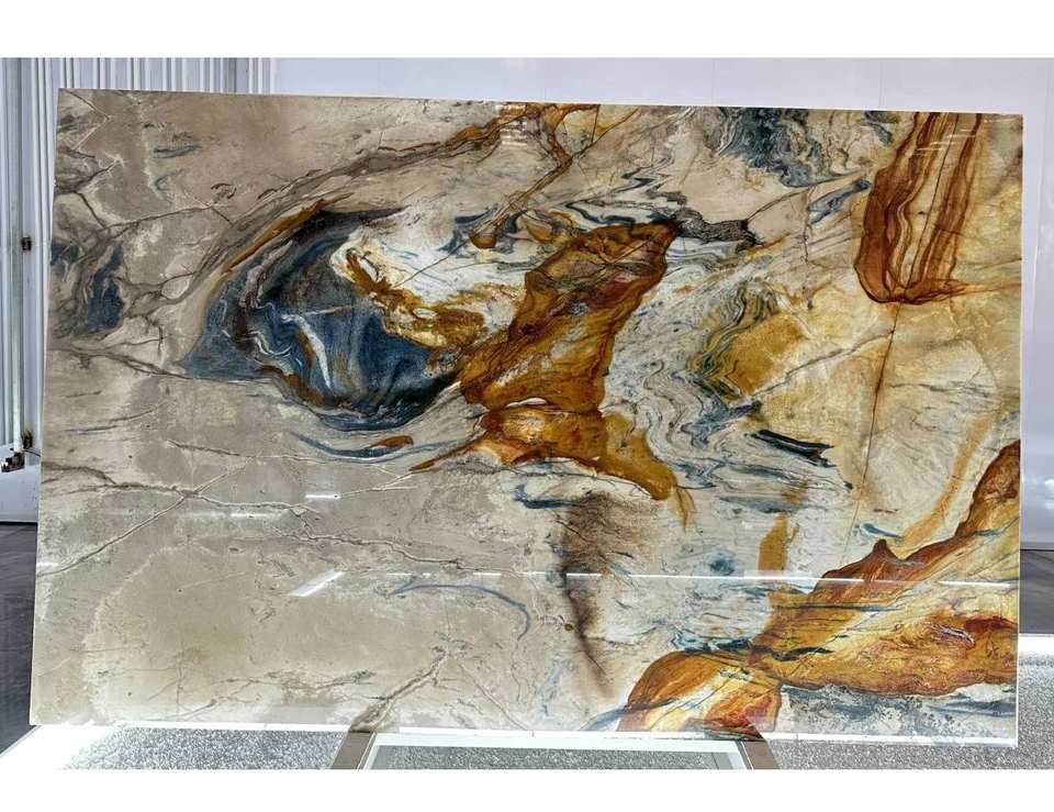 แผ่นหินควอทซ์ไซต์หรูหรา Lapis Lazuli เส้นเลือดทองสำหรับวิลล่าชั้นสูงเทคนิคธรรมชาติขัดในร่มแบบกำหนดเอง