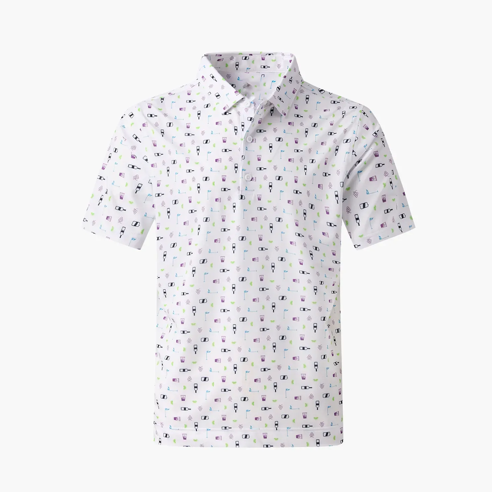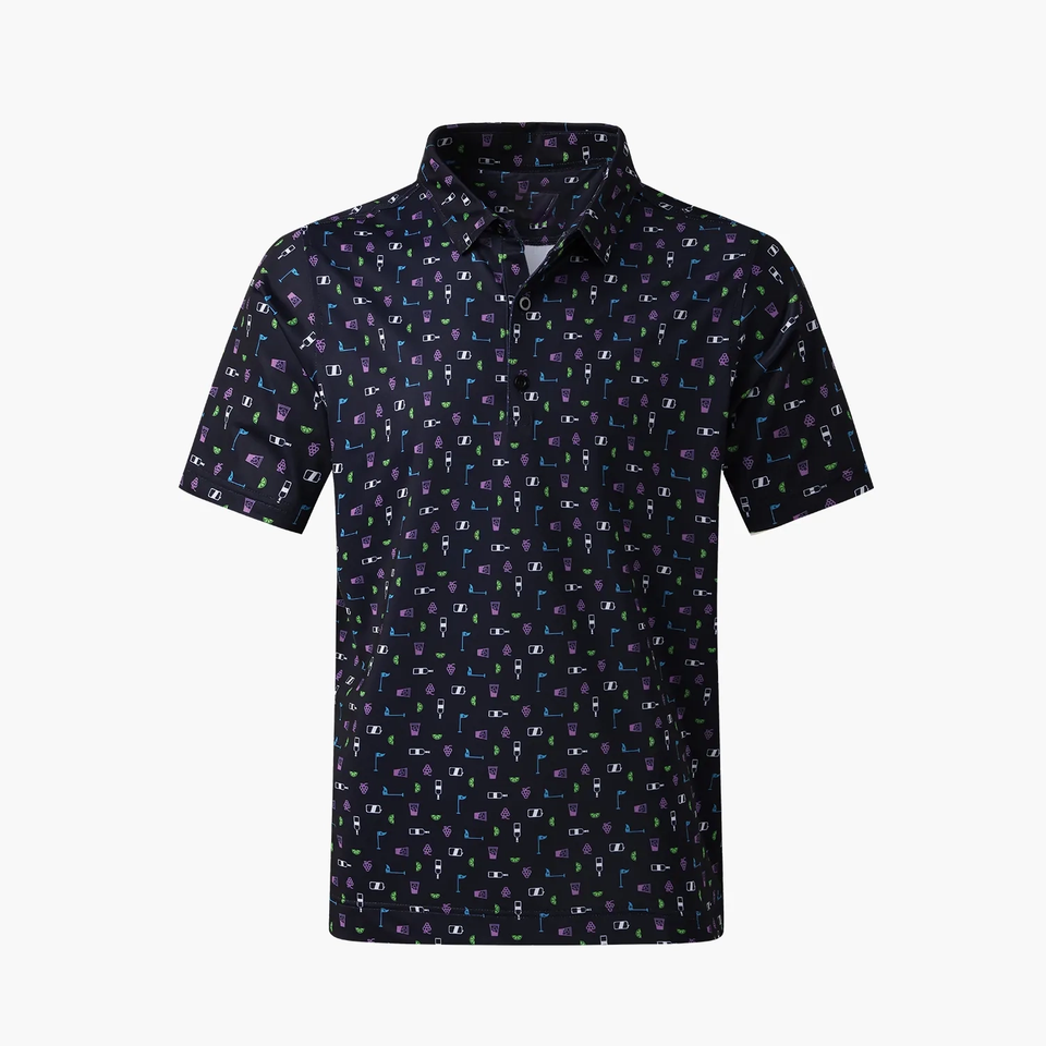 เสื้อโปโลกอล์ฟเท็กซัส ผ้าโพลีเอสเตอร์ผสมสแปนเด็กซ์ ระบายความชื้น แห้งเร็ว ยืดได้ 4 ทิศทาง พิมพ์ลายเต็มตัว คุณภาพระดับพรีเมียม