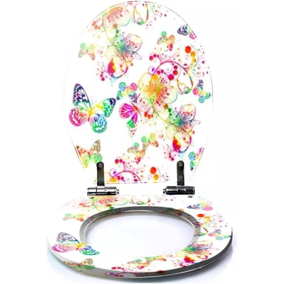 ฝารองนั่งชักโครกเรซิ่นลายดอกไม้สีรุ้งหรูหรา ทนทาน ทำความสะอาดง่าย ดีไซน์ลายผีเสื้อ ผลิตในจีน มีสินค้าพร้อมส่ง