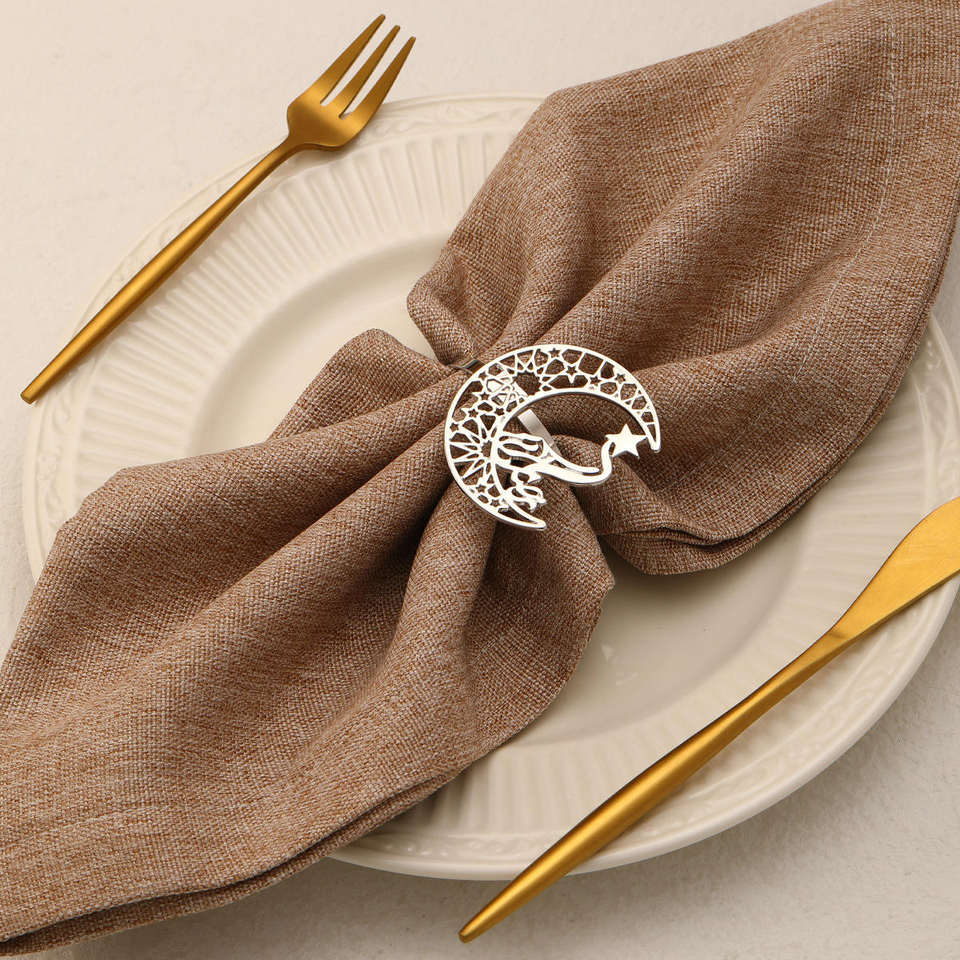 ที่ใส่ผ้าเช็ดปากรูปพระจันทร์เสี้ยวสำหรับรอมฎอนสุดหรู สีทอง สีเงิน ของตกแต่งโต๊ะอาหารอิสลาม อุปกรณ์เสริมสำหรับงานเลี้ยงฉลองอีด