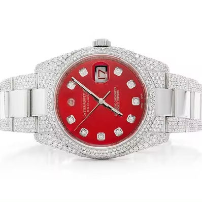 นาฬิกา Moissanite หน้าปัดสีแดงแบบปรับแต่งได้ตามต้องการความชัดเจนของ VVS เพชรนาฬิกาหน้าอกคุณภาพสูงสายสแตนเลส20มม.