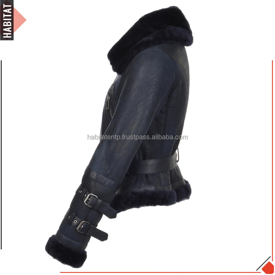แจ็กเก็ตหนังแท้สำหรับผู้หญิงหรูหราสีดำแท้มีซิปด้านหน้าแบบเต็มคอซับในขนสุนัขจิ้งจอก