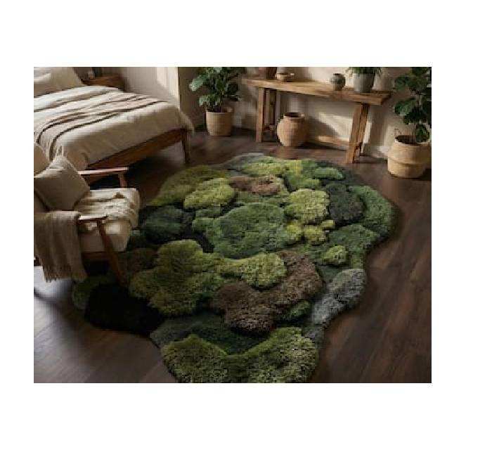 พรมขนสัตว์แท้ลายป่ามอสสีเขียว ดีไซน์หรูหรา งานแฮนด์เมด 3 มิติ กันลื่น หนานุ่ม สำหรับตกแต่งห้องนอนและโรงแรม
