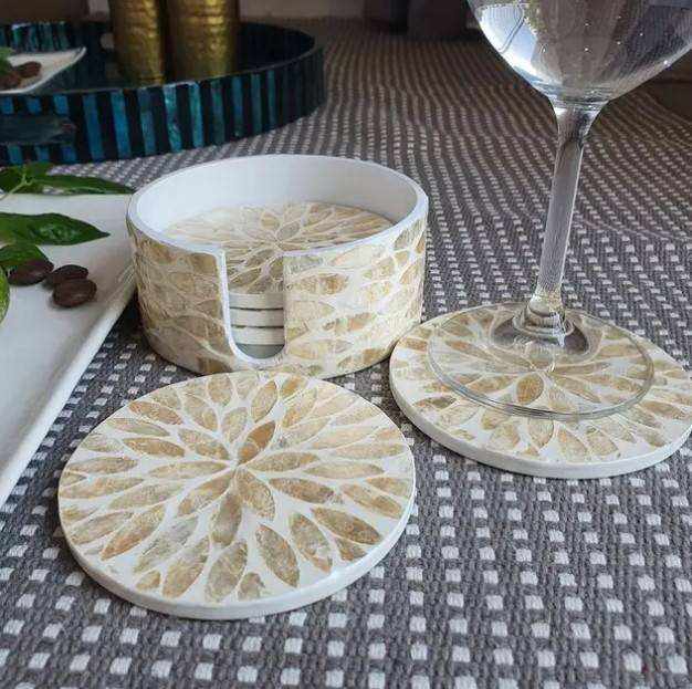 แผ่นรองแก้วรูปสี่เหลี่ยมผืนผ้าหรูหรา ทำจากมุกและไม้วอลนัท ทำมือ เป็นมิตรกับสิ่งแวดล้อม ทันสมัย ปรับแต่งได้ หนา 5 มม. สำหรับใช้ในบ้านและสำนักงาน