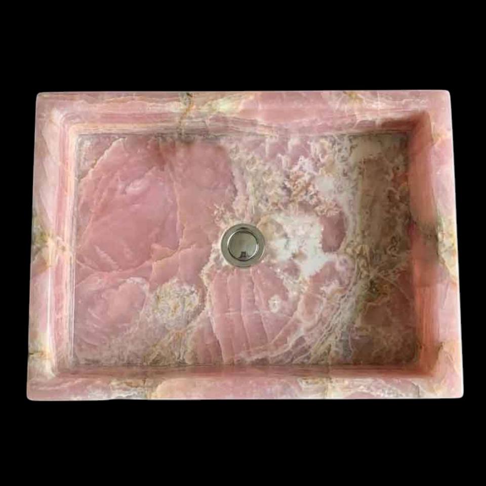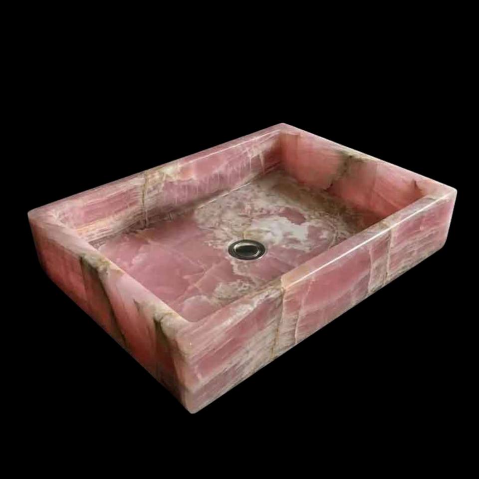 อ่างล้างจานครัวทรงสี่เหลี่ยมผืนผ้าหรูหรา ทำจากหินควอตซ์สีชมพูและออนิกซ์ ทันสมัย พร้อมหินบำบัด สำหรับอ่างล้างหน้าในห้องน้ำ ตกแต่งอย่างประณีต