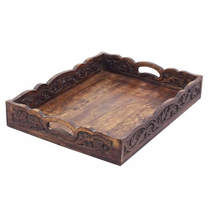 ถาดเสิร์ฟไม้ทรงสี่เหลี่ยมผืนผ้าหรูหรา ทำจากไม้กระถินเทศ พร้อมหูจับ สำหรับใช้ในครัวและห้องรับประทานอาหาร