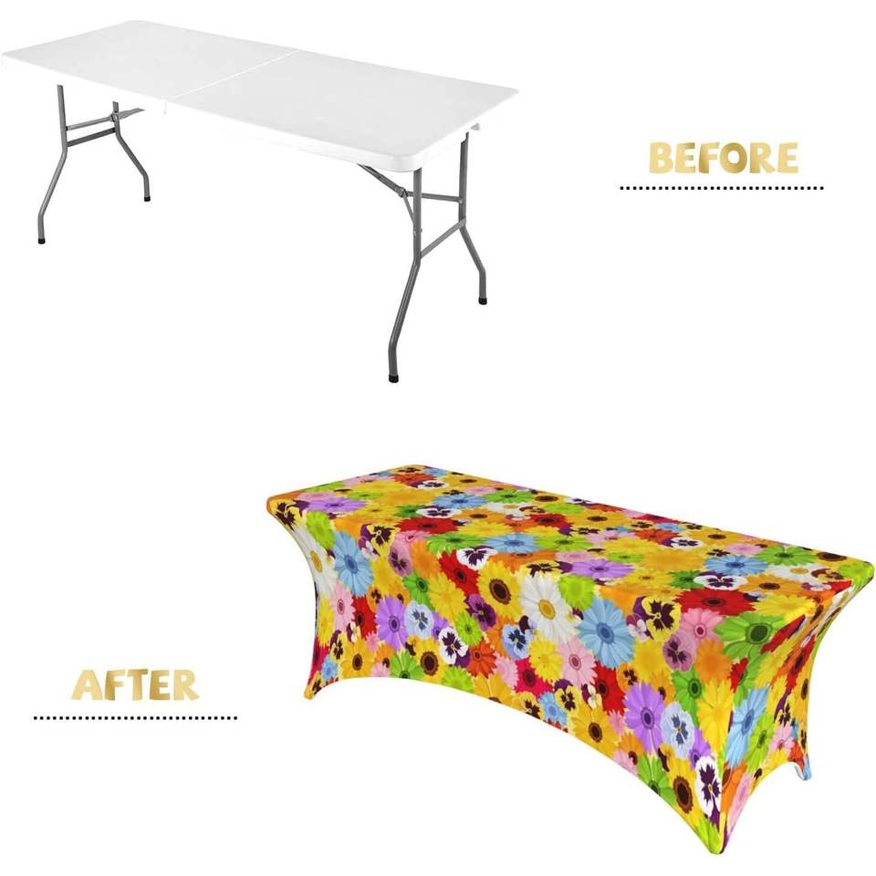 ผ้าคลุมโต๊ะจัดเลี้ยงผ้าสแปนเด็กซ์ทรงสี่เหลี่ยมผืนผ้ายืดได้ผ้าสแปนเด็กซ์สีสดใสออกแบบสำหรับงานเลี้ยงในฤดูใบไม้ผลิสต็อกที่กำหนดเอง