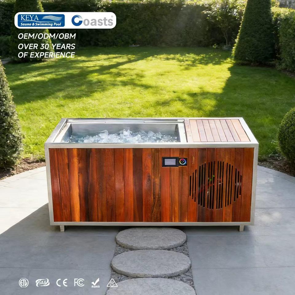 อ่างแช่น้ำเย็นกลางแจ้งไม้ซีดาร์แดงสุดหรู พร้อมเครื่องทำความเย็นและไฟ สำหรับใช้ในสปาที่บ้าน อ่างแช่น้ำแข็งเพื่อการฟื้นฟูร่างกาย