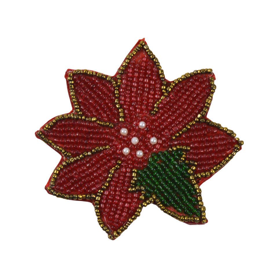 ที่รองแก้วลูกปัดลายดอกไม้สีแดงสุดหรูแผ่นรองจานและแผ่นรองจานสำหรับตกแต่งโต๊ะรับประทานอาหาร