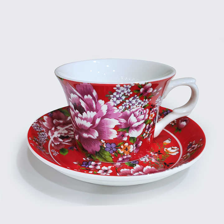 ชุดถ้วยกาแฟเซรามิคลายดอกไม้สีแดงหรูหรา พร้อมจานรอง ลายดอกโบตั๋นจีน พอร์ซเลน ชินไตหยวน เหมาะสำหรับเป็นของขวัญ