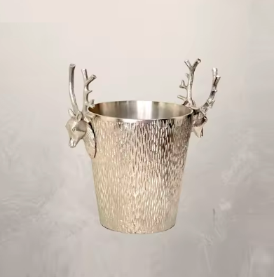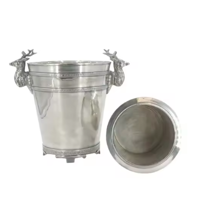 ถังน้ำแข็งสีเงินดีไซน์รูปกวางเรนเดียร์หรูหราพร้อมที่จับสำหรับตู้แช่ไวน์บาร์ร้านอาหารและปาร์ตี้ถังของตกแต่งที่ยอดเยี่ยม