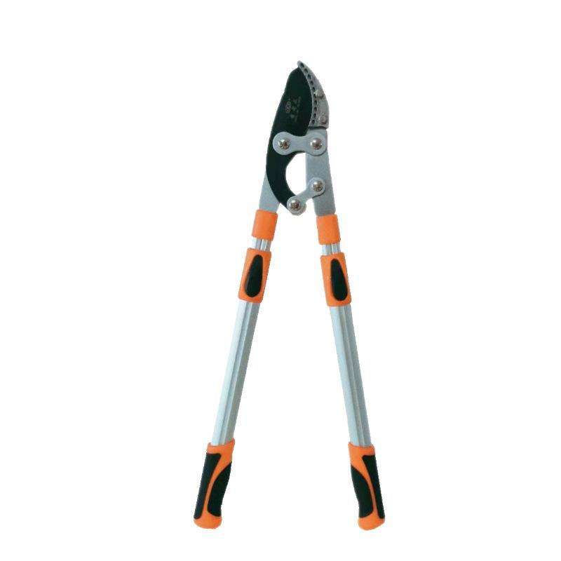 กรรไกรตัดกิ่งแบบยืดหดได้เสริมความแข็งแรง 102 ซม. เหล็กกล้าคาร์บอน ปากฉลาม เคลือบเทฟลอนสีส้ม อุปกรณ์ตัดแต่งกิ่ง
