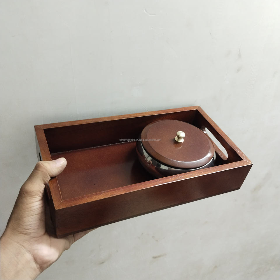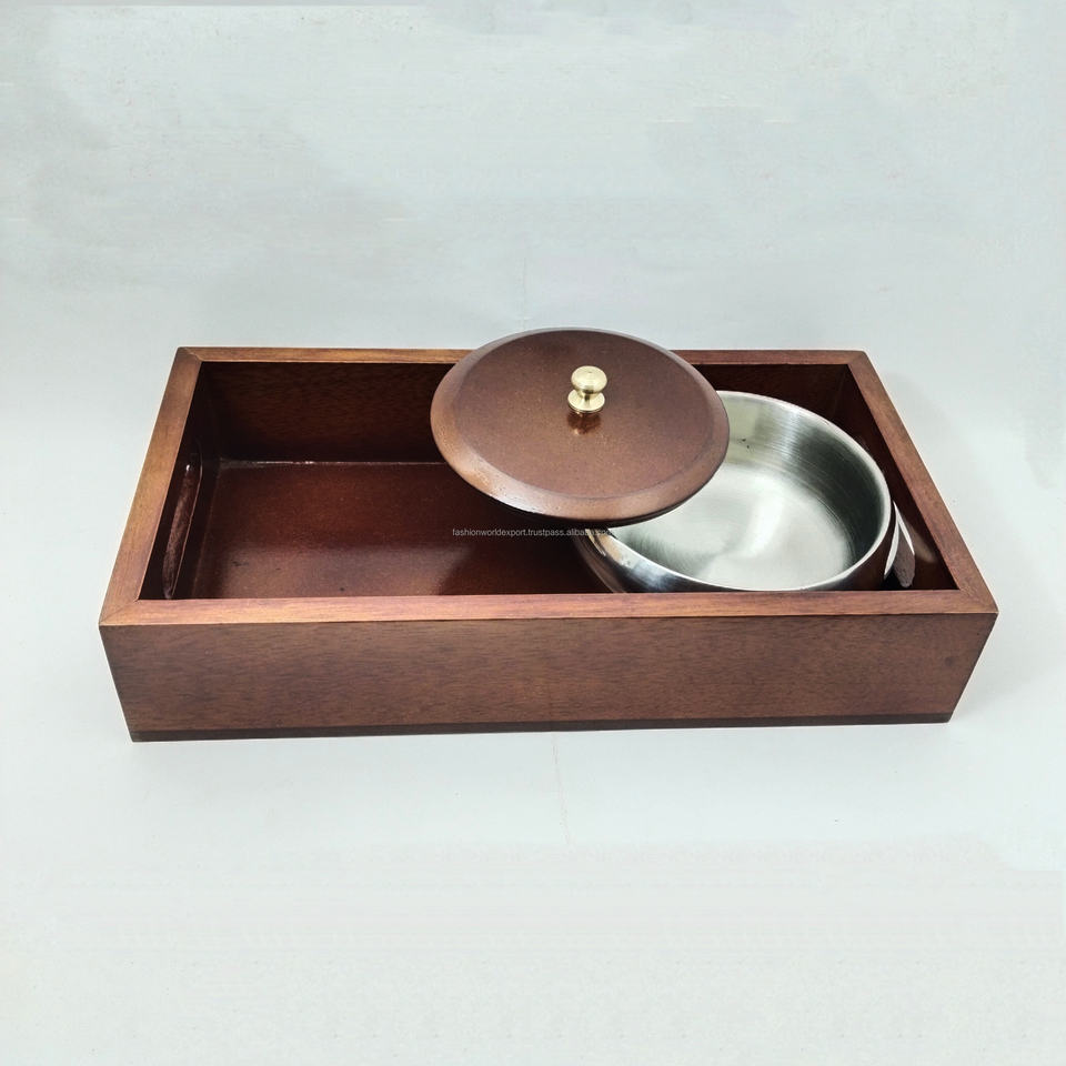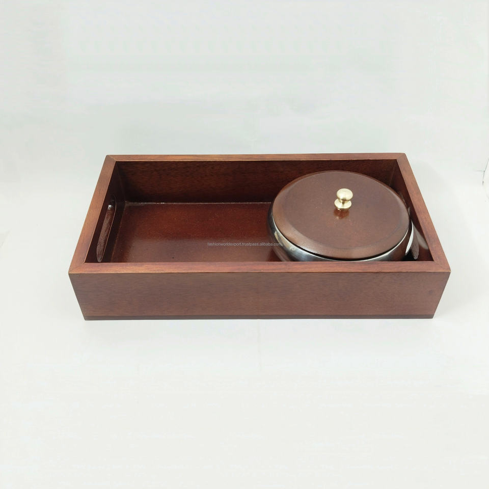 ถาดไม้มีฝาปิดที่ถอดออกได้หรูหราโถเก็บชามตกแต่งอเนกประสงค์ดีไซน์หรูหราสำหรับห้องนั่งเล่นโต๊ะรับประทานอาหารสำนักงาน