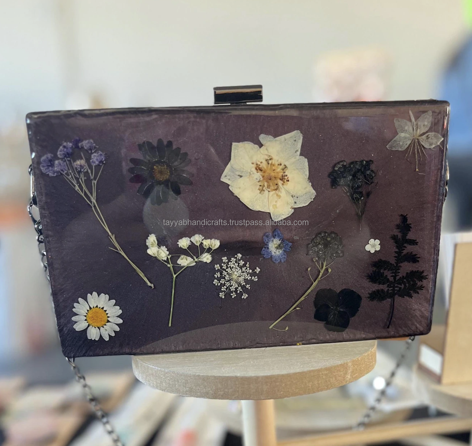 กระเป๋าคลัทช์เรซิ่นสุดหรูกระเป๋าโพลีเรซินรูปดอกไม้ทำด้วยมือของขวัญแต่งงานสีตามสั่งจากอินเดีย