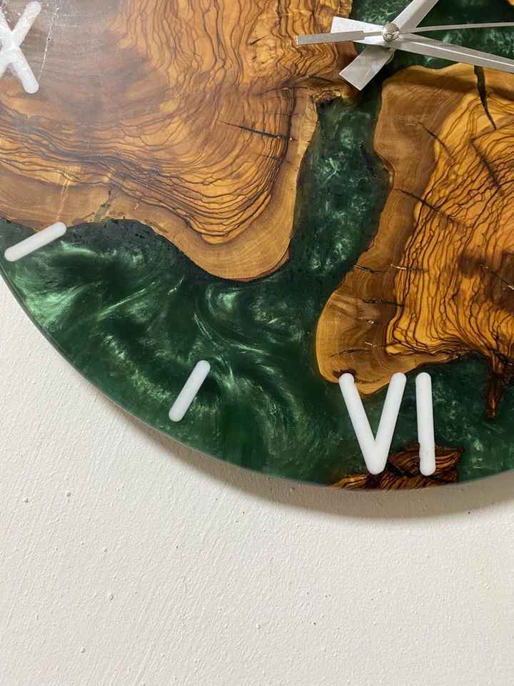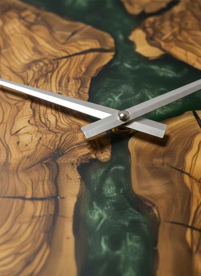 นาฬิกาแขวนผนังงานฝีมือเรซิ่นสุดหรู ตกแต่งด้วยไม้ ดีไซน์เรียบเนียน ทนทาน เหมาะสำหรับตกแต่งภายในห้องนั่งเล่นสไตล์โมเดิร์น