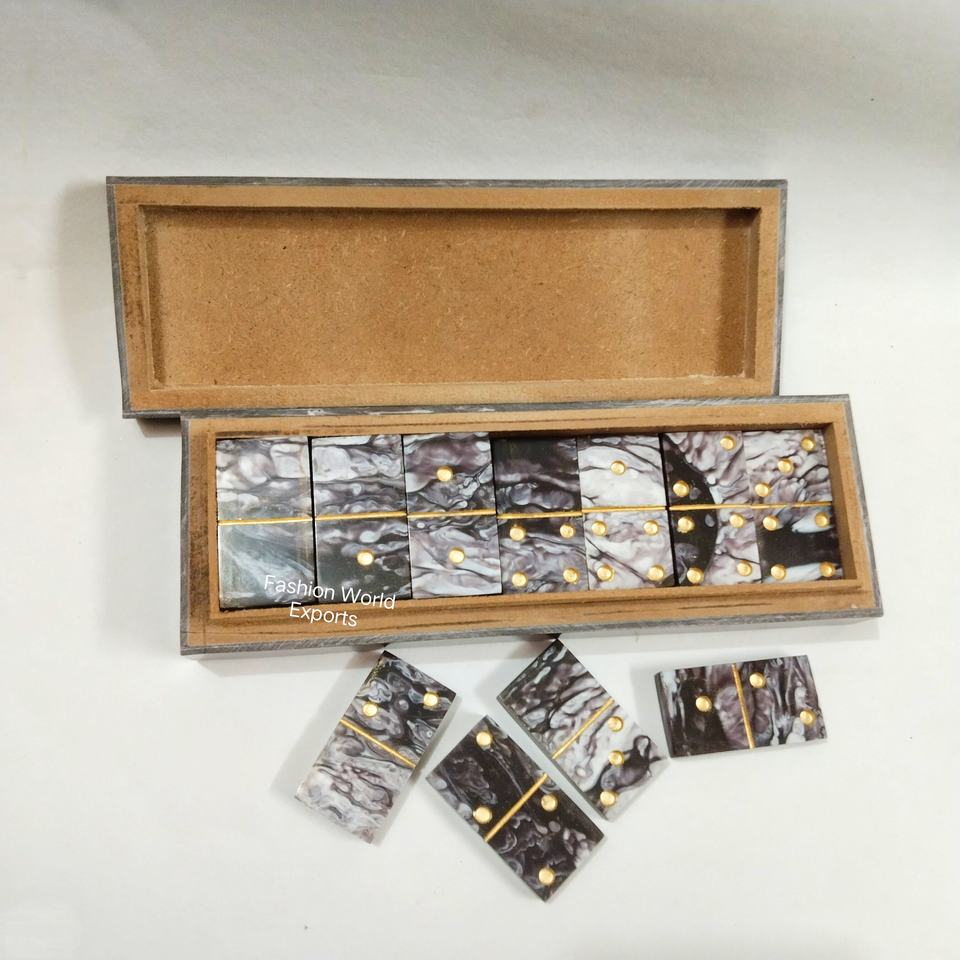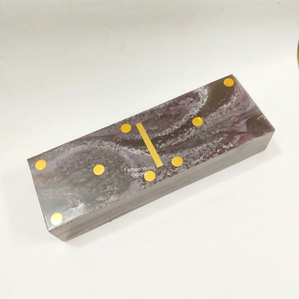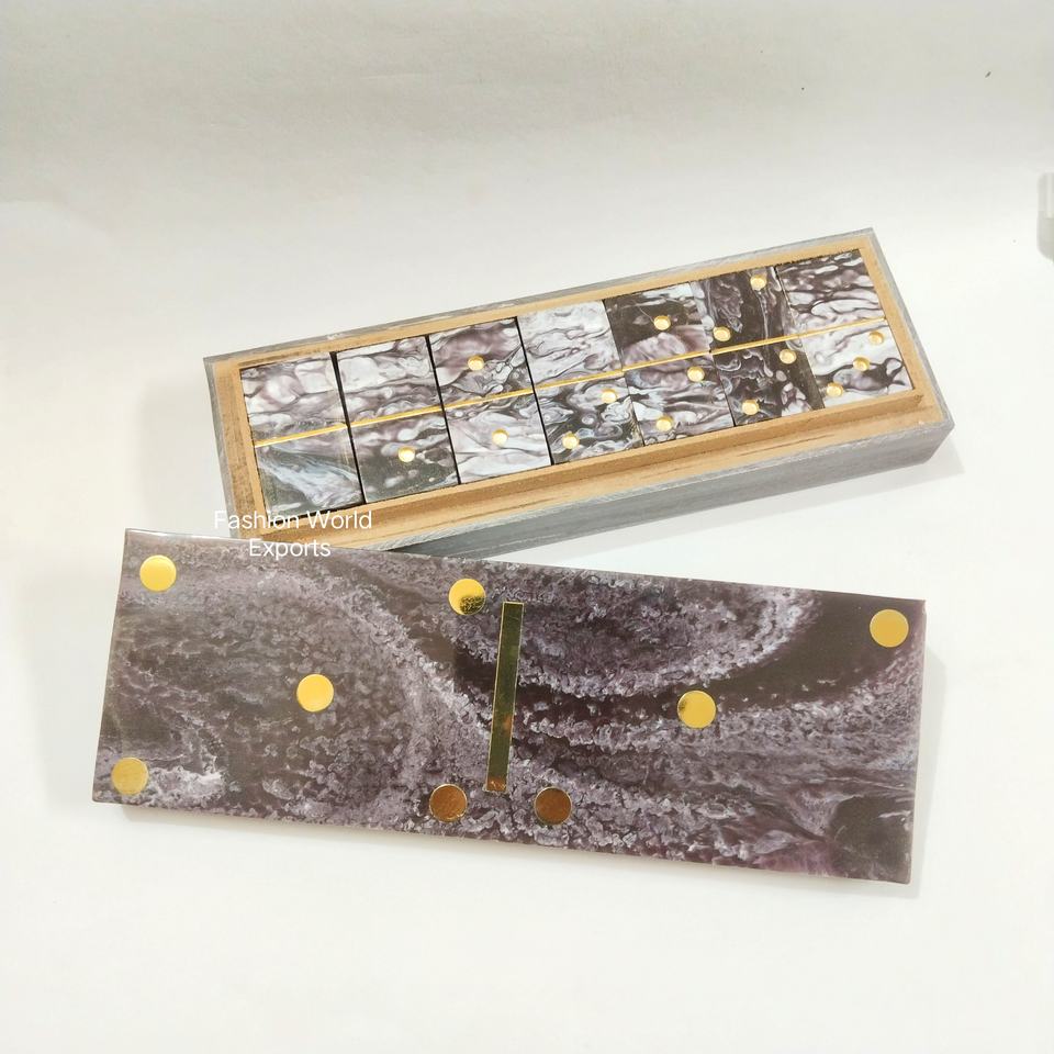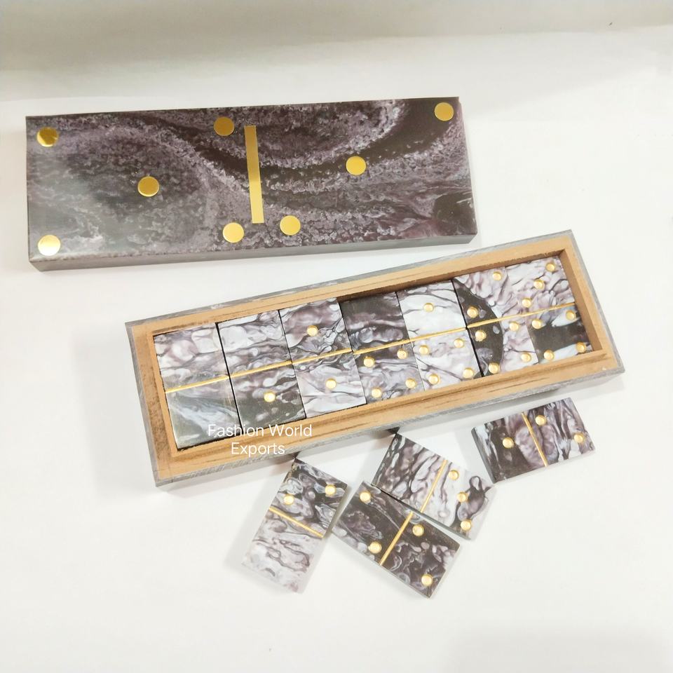 กล่องเก็บโดมิโนเรซิ่นสุดหรูพร้อมลายทองคำ ชุดเกมโดมิโนลายหินอ่อนทำมือพร้อมฐานไม้สำหรับตกแต่งบ้าน