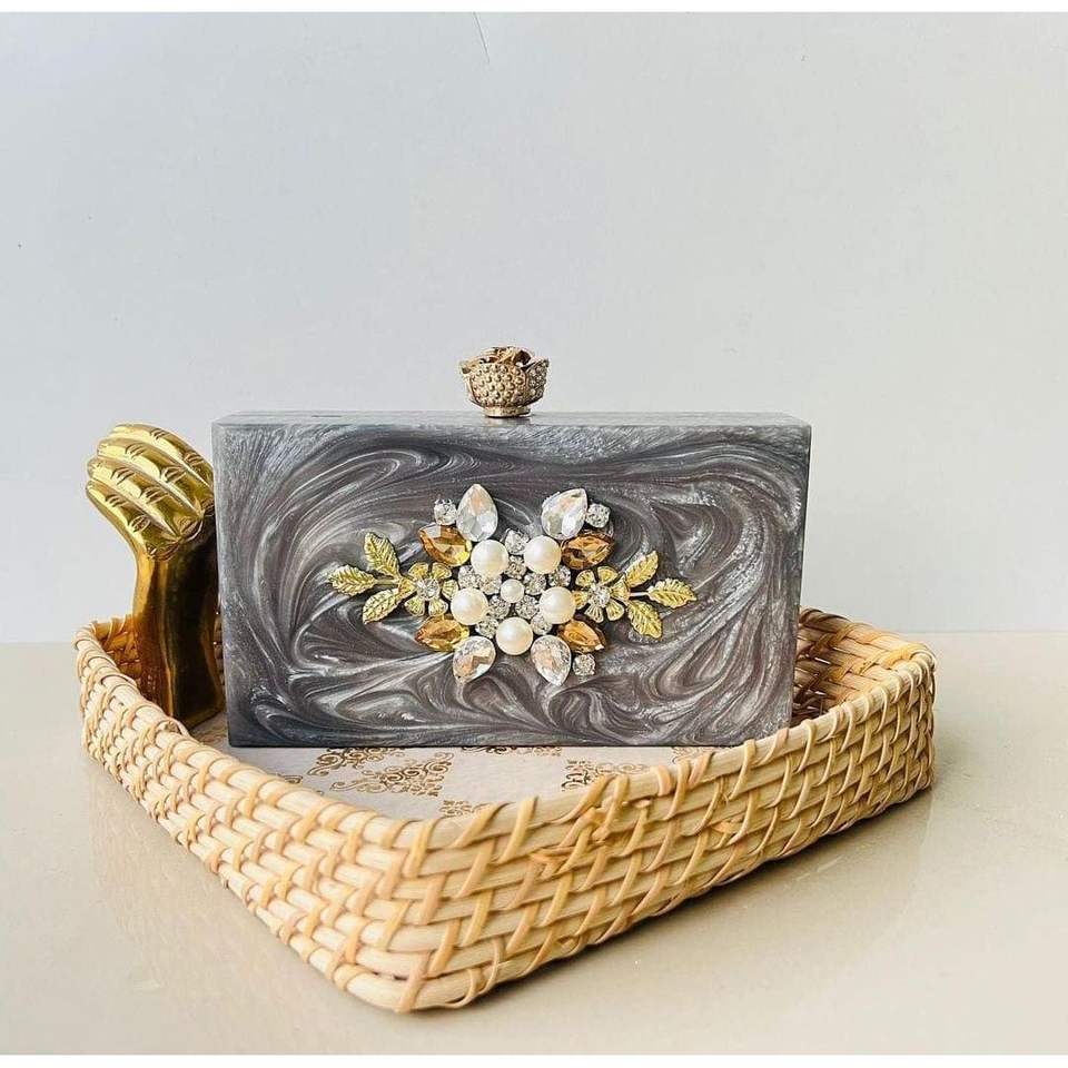 Luxury Resin Ladies' Evening Bag Handcrafted Crystal Fashion Accessory for Party Clutch