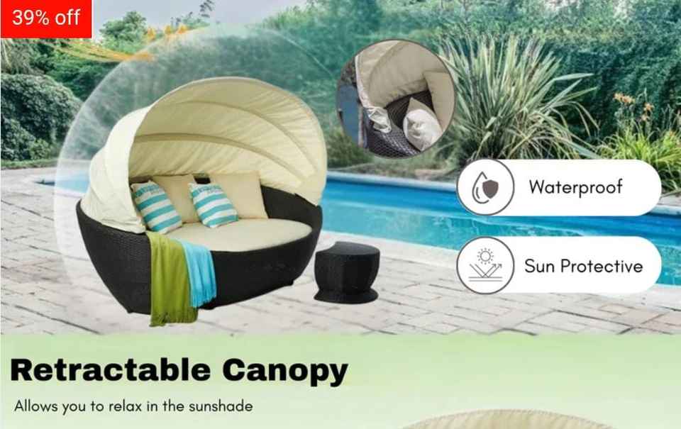 All-Weather PE Rattan / Wicker, Rust-Proof Frame, Adjustable ShadeFeature