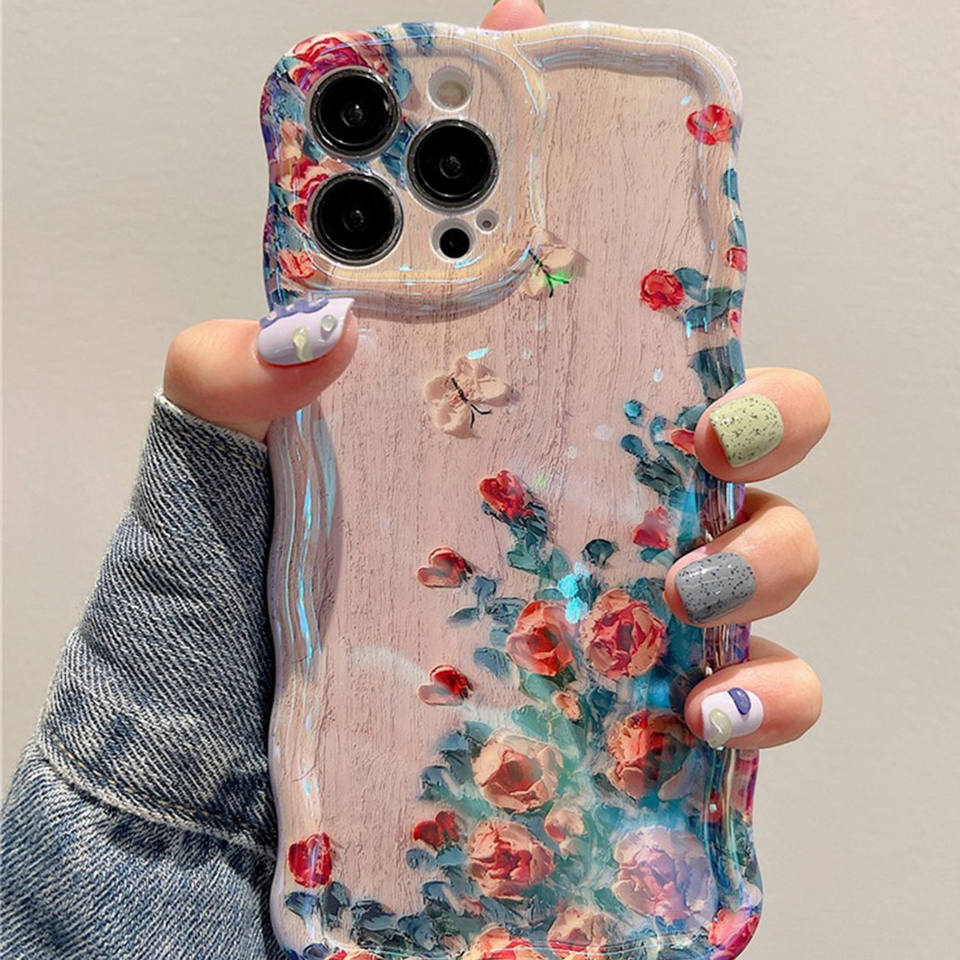 เคสโทรศัพท์ลายภาพวาดสีน้ำมันสไตล์เรโทร ลายดอกไม้สุดหรู สำหรับ 11 12 13 14 15 16 Pro Max