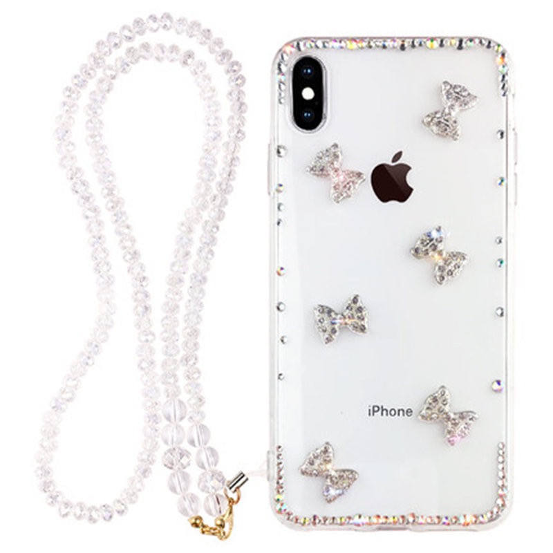 เคสโทรศัพท์หรูหราประดับโบว์คริสตัลสำหรับ iPhone 17/16/15/14/13 Pro Max สายคล้องคริสตัลใส ป้องกันรอยขีดข่วน สำหรับผู้หญิง
