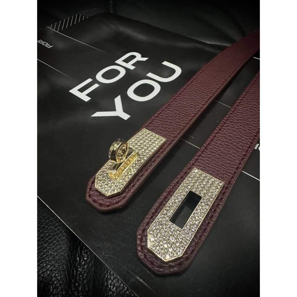 เข็มขัดประดับเพชรหรูหราพร้อมหัวเข็มขัดแบบแผ่นสำหรับผู้หญิง แฟชั่นสำหรับงานปาร์ตี้ สายหนังสีแดงเบอร์กันดี