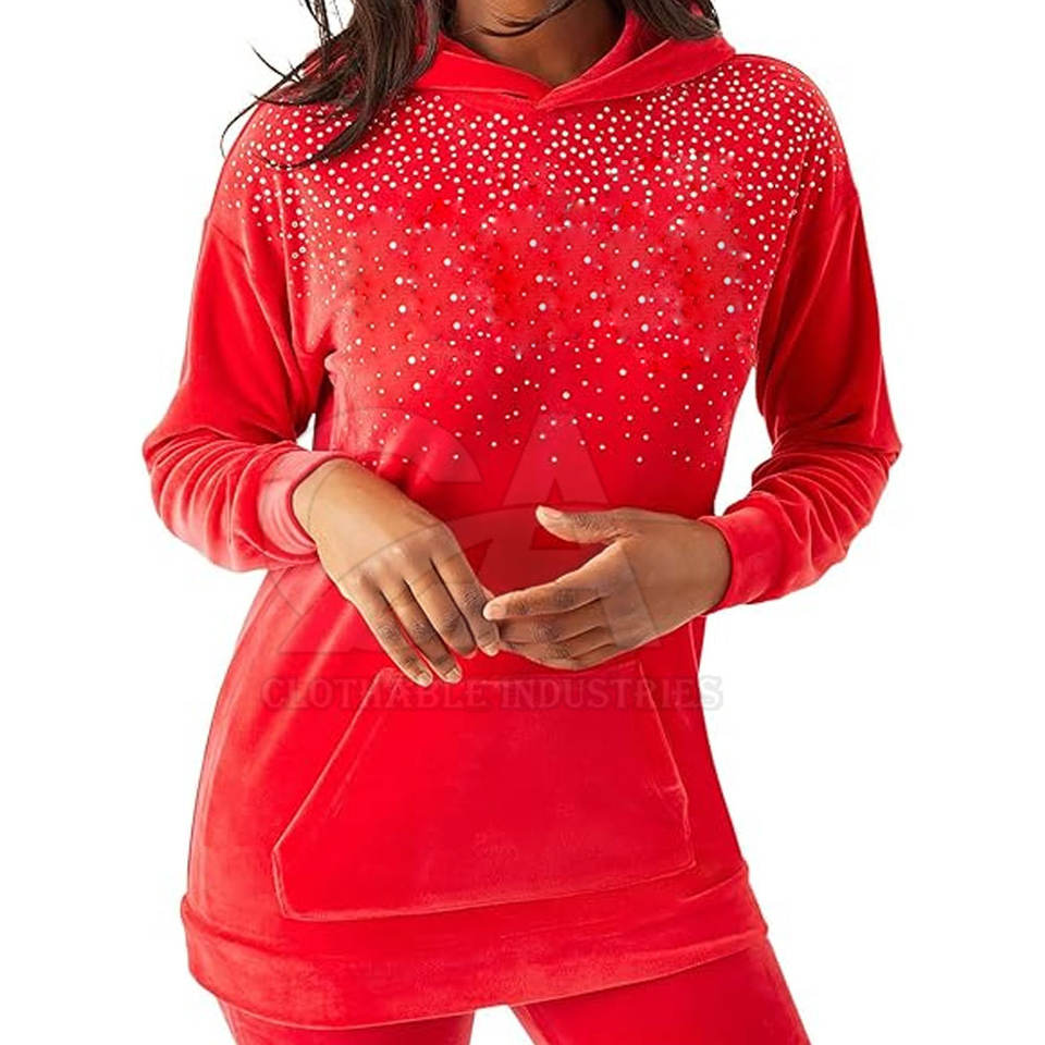 เสื้อฮู้ดประดับเพชรสำหรับผู้หญิง