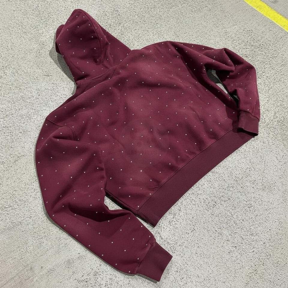 เสื้อฮู้ดดี้หรูหราประดับเพชรเทียม แบบสั่งทำพิเศษสำหรับผู้ชาย สีมารูน สไตล์สตรีทแวร์ ผ้าคอตตอนหนานุ่ม คุณภาพสูง ออกแบบโลโก้ได้