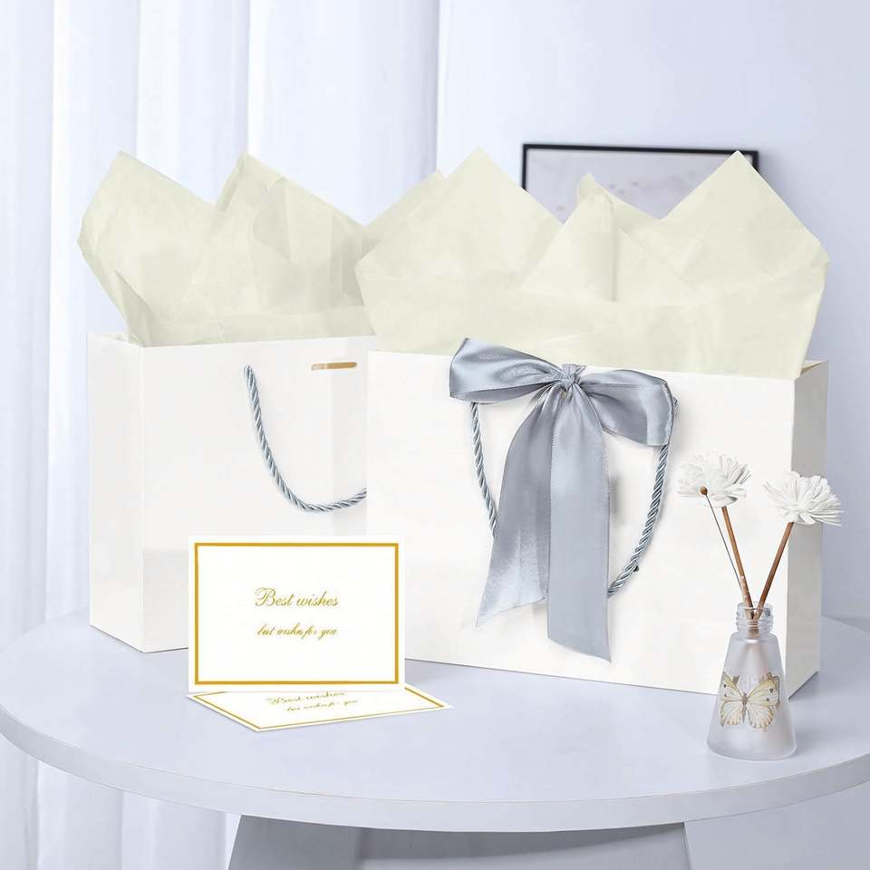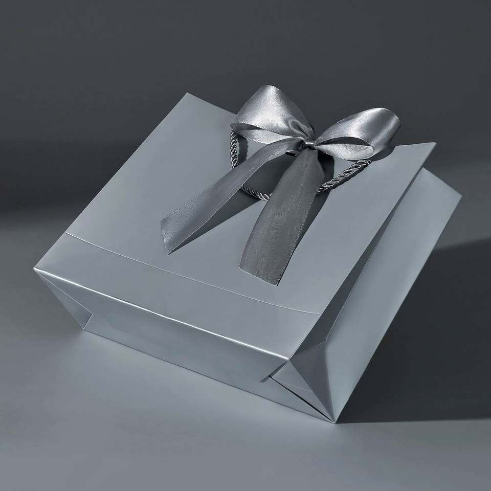 ถุงกระดาษช้อปปิ้งแบบมีหูหิ้วริบบิ้นหรูหรา ถุงของขวัญกระดาษพิมพ์ลายนูนตามสั่ง พร้อมโลโก้
