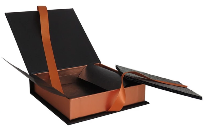 กล่องของขวัญช็อคโกแลตปิดด้วยแม่เหล็กแข็งสุดหรูพร้อมถาดกระดาษด้านในวัสดุรีไซเคิลและผิวแวววาว