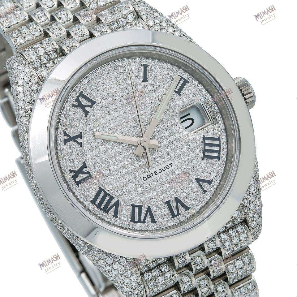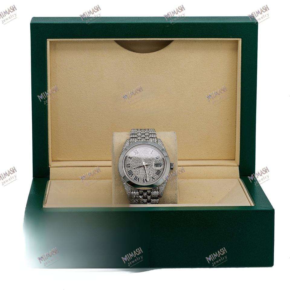 นาฬิกาเพชรโมอิสรูปตัวเลขโรมันสุดหรูนาฬิกาบอกเวลาแบบน้ำแข็งเต็มรูปแบบพร้อมแสดงวันที่ของขวัญเป็นประกายสำหรับผู้ชายและผู้หญิง