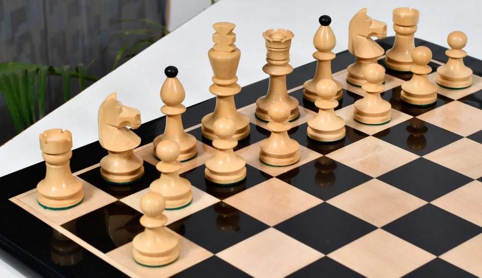 ตัวหมากรุกหรูหราแบบโรมาเนียและฮังการี ขนาด 3.8 นิ้ว ทำจากไม้เอโบนีและไม้บ็อกซ์วูด น้ำหนักสมดุล ราคาดีที่สุด