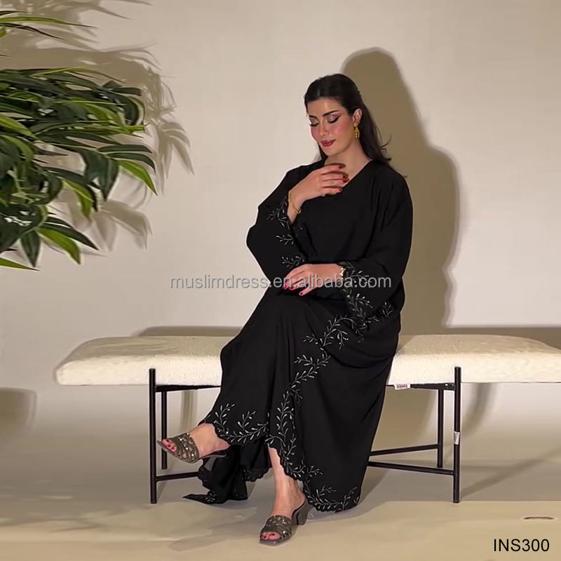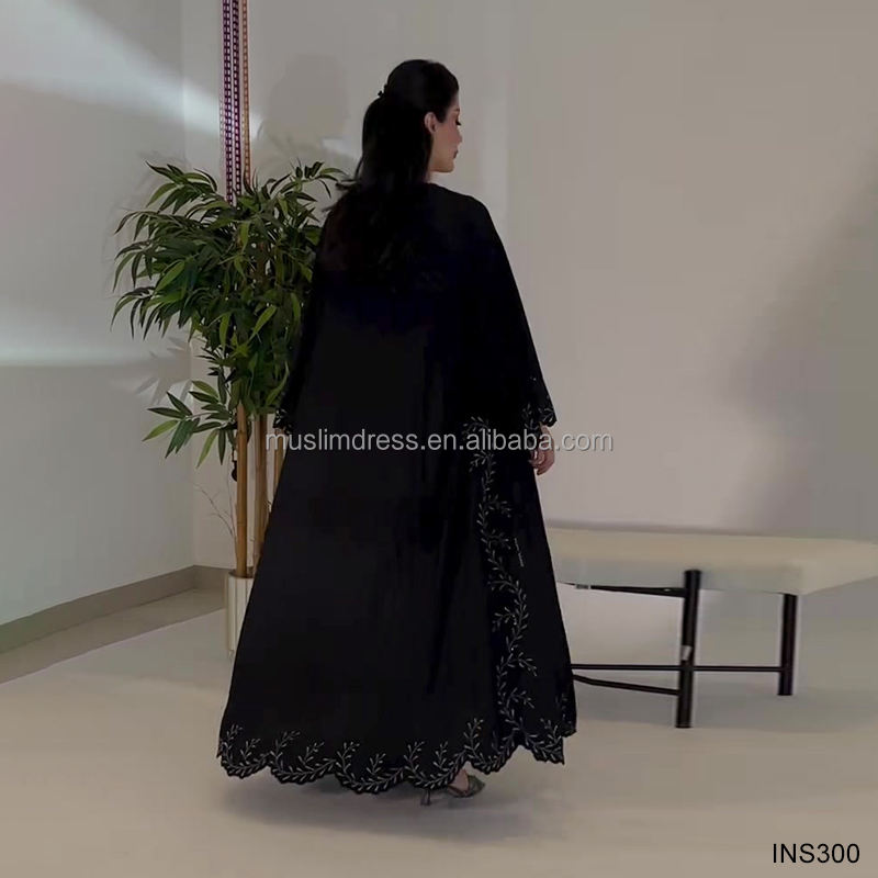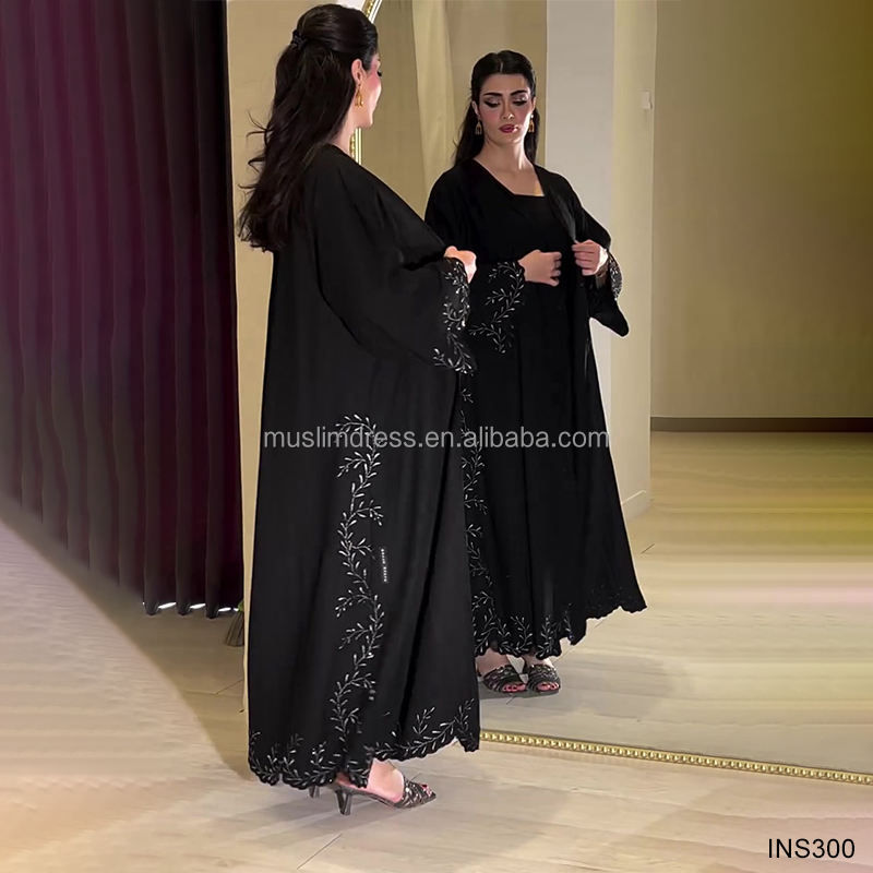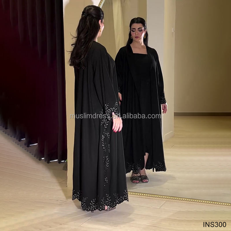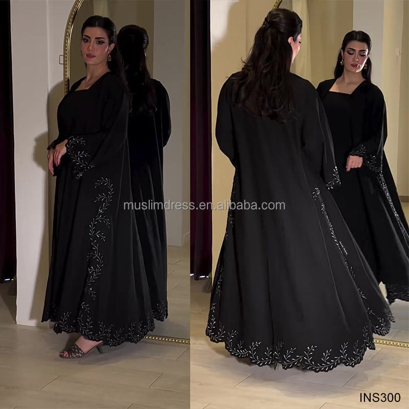 ชุดอาบายะห์หรูหราสไตล์โรแมนติกสำหรับผู้หญิง แบบเปิดประดับด้วยคริสตัลและมุก เสื้อผ้าอิสลามสุภาพเรียบร้อย ผลิตจากโพลีเอสเตอร์