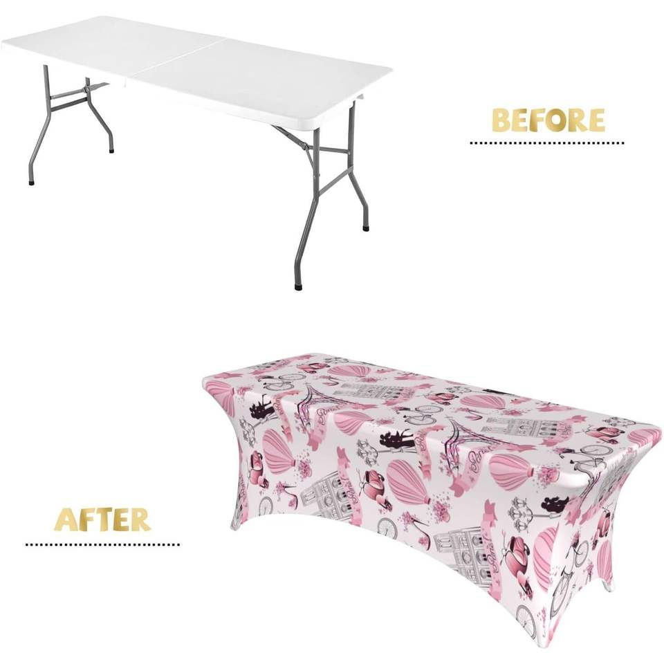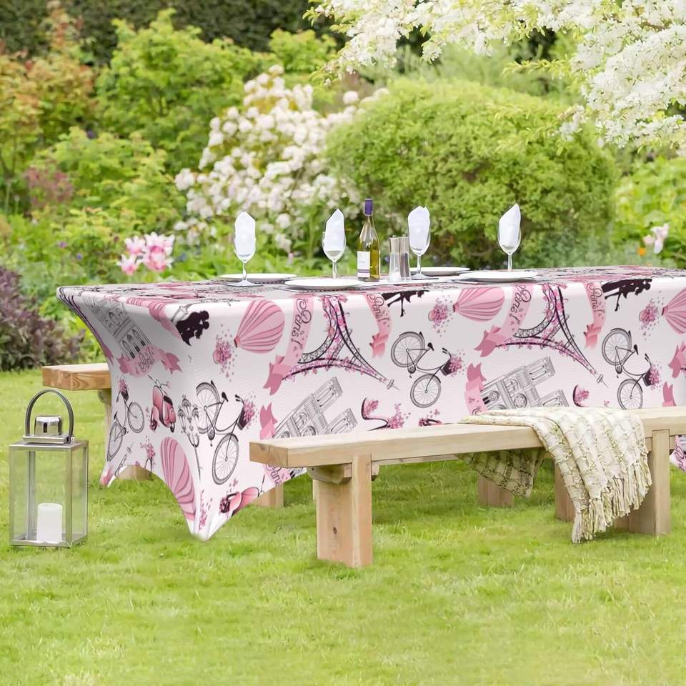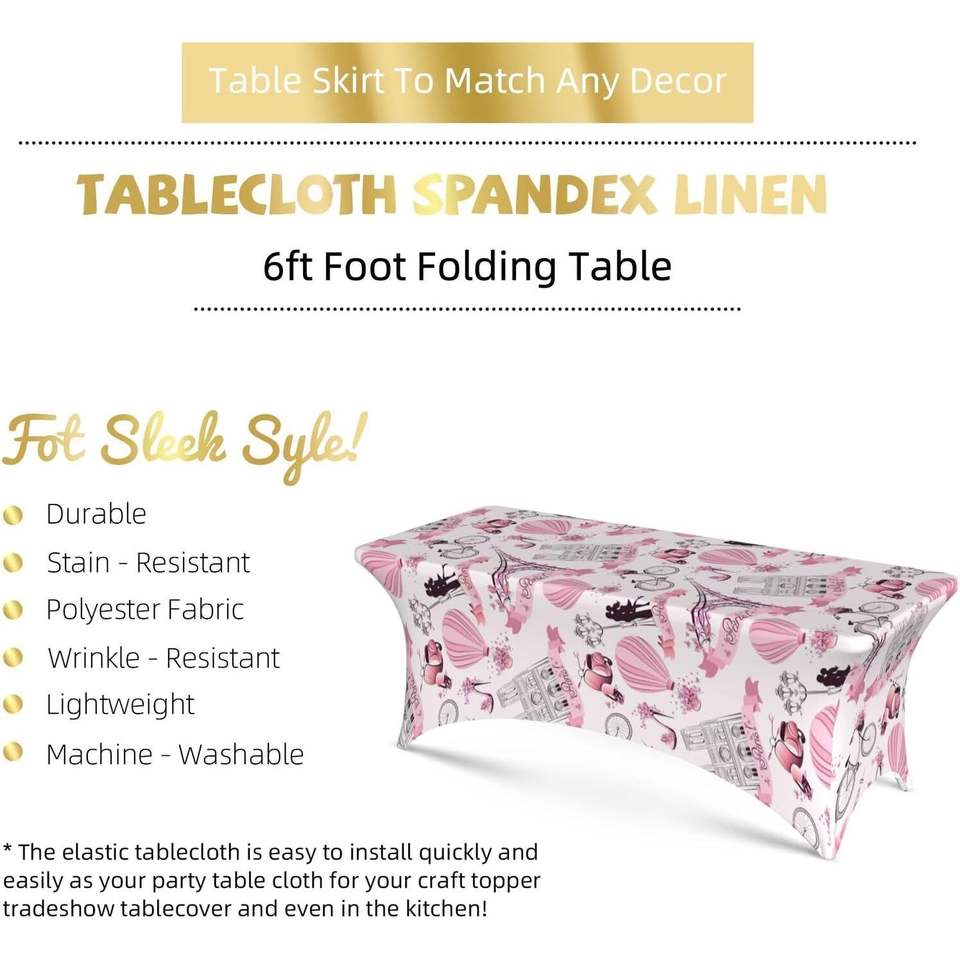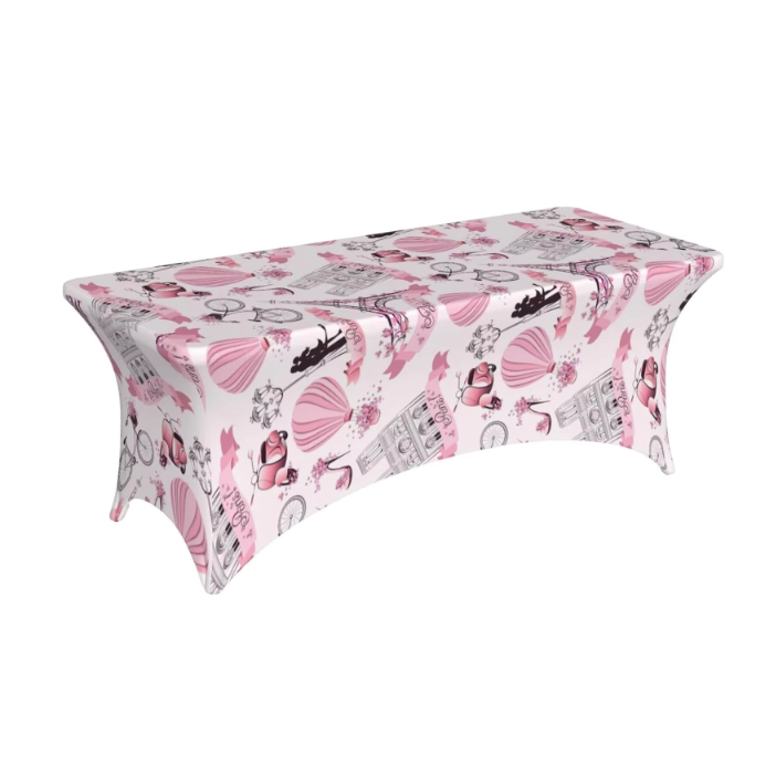 Luxury Romantic Paris Eiffel Tower Wedding Tablecloths Rectangular Fitted Stretch Spandex Table Cover for Banquet Parties