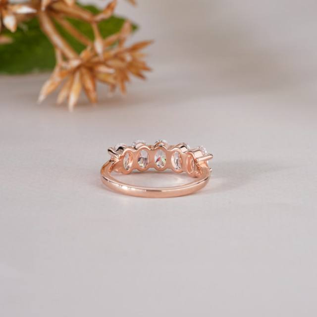 แหวนวงแหวนสีโรสโกลด์หรูหรา ประดับด้วยพลอยใสทรงวงรี ดีไซน์ห้าเม็ดสวยสง่า สำหรับผู้หญิง สวมใส่ในงานปาร์ตี้ หรือเป็นของขวัญวันครบรอบ