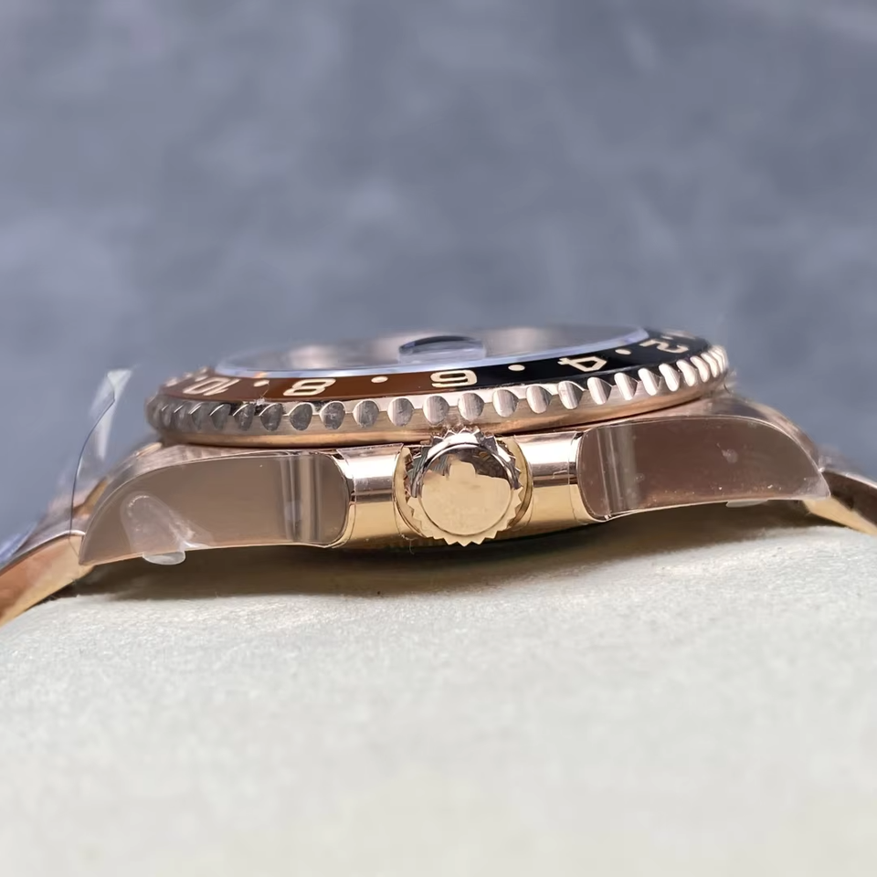 นาฬิกาเดินทางสำหรับผู้ชายตัวเรือนสแตนเลสคริสตัลแซฟไฟร์ตัวเรือนสีดำสีน้ำตาลทองกุหลาบแบบหรูหรา