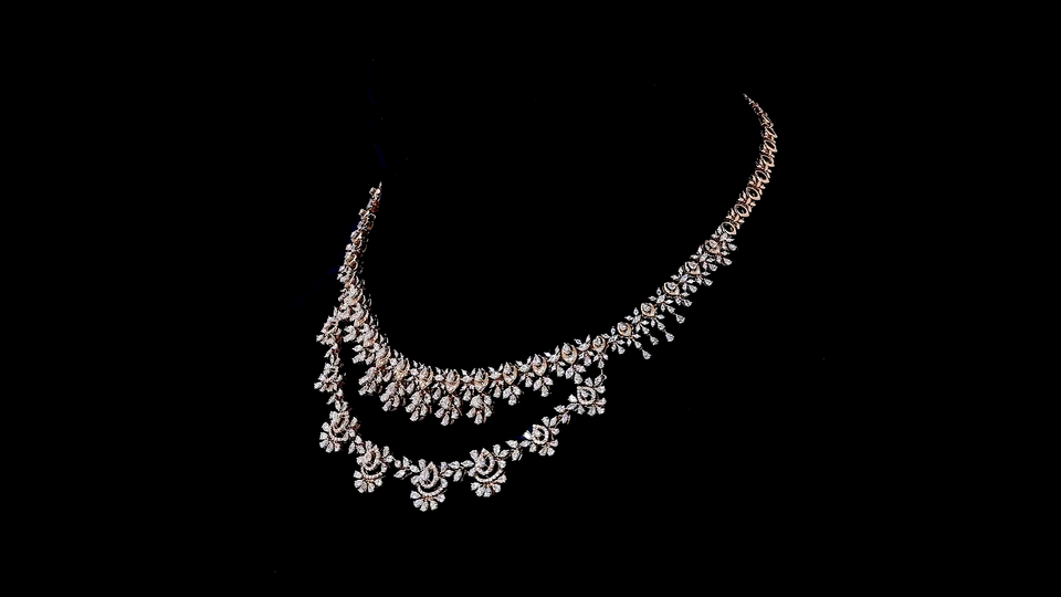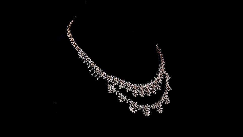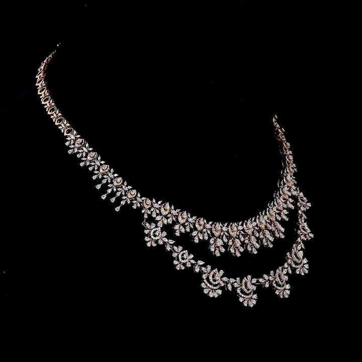 ชุดสร้อยคอเพชรเคลือบทองคำสีกุหลาบสุดหรู | สร้อยคอเงินสำหรับงานแต่งงาน | ผู้ผลิตเครื่องประดับชั้นดี