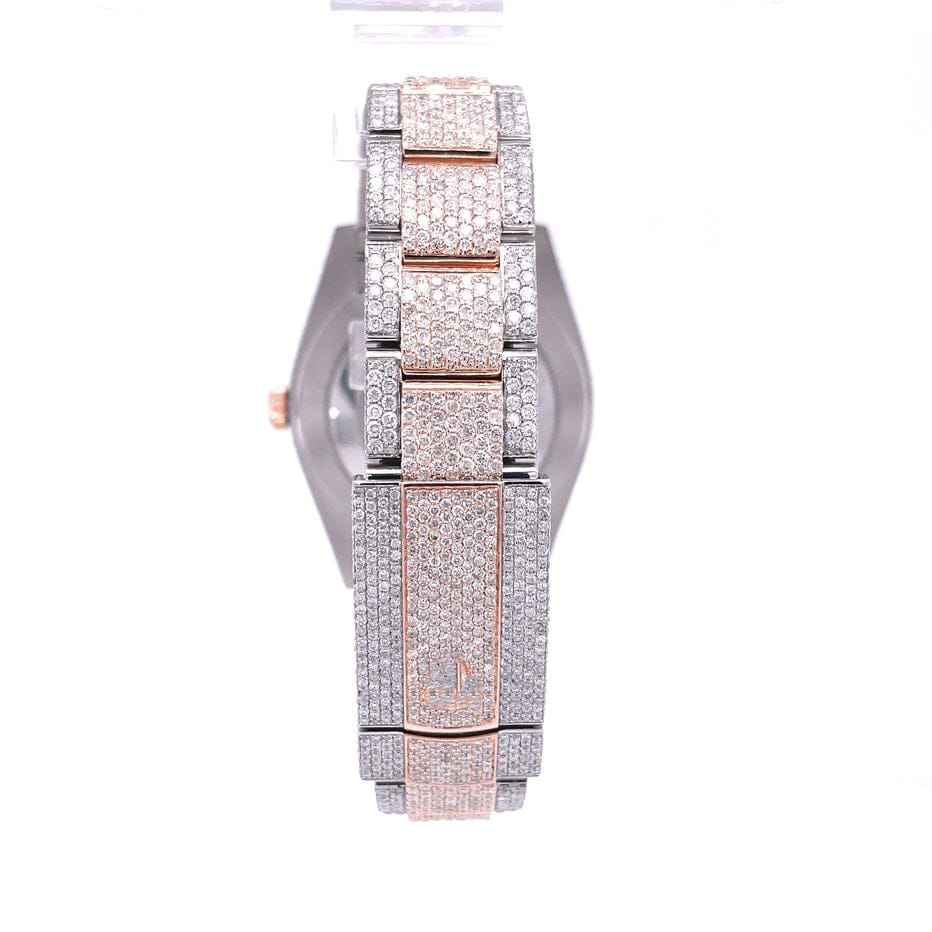 นาฬิกาเพชรสองโทนสีโรสโกลด์หรูหราตัวเลขอารบิกแสดงวันที่อัตโนมัติ20มม. สายสแตนเลสแบบอะนาล็อกโบราณ