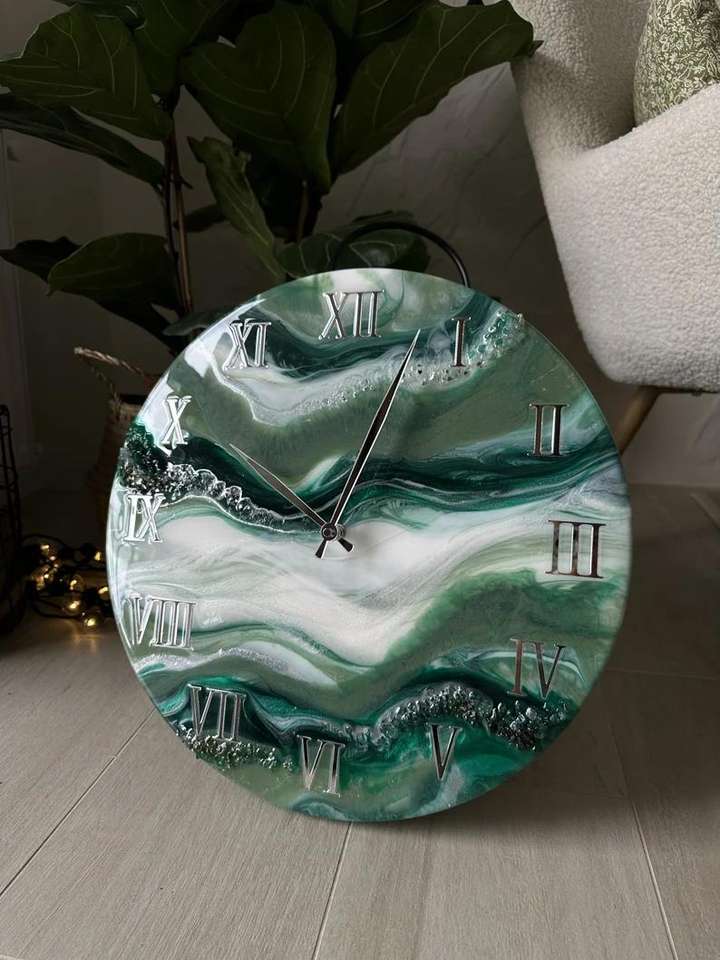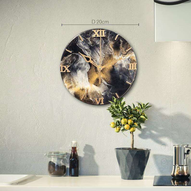 นาฬิกาแขวนผนังดีไซน์อาร์ตเดโค โครงไม้เรซิ่น ระบบควอตซ์หรูหรา ใช้แบตเตอรี่ แสดงเวลาแบบเข็ม ผลิตโดย HF Industries Healing