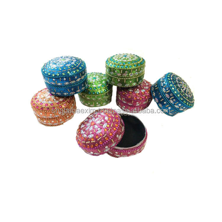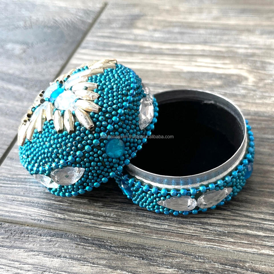 กล่องเก็บของที่ระลึกประดับลูกปัดและกระจกทรงกลมหรูหรากล่องยาโลหะสำหรับตกแต่งกล่องดีไซน์เนอร์