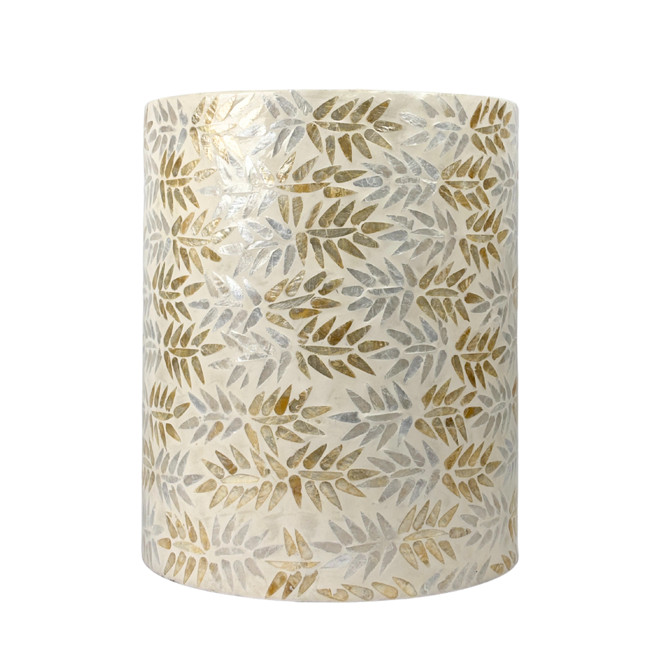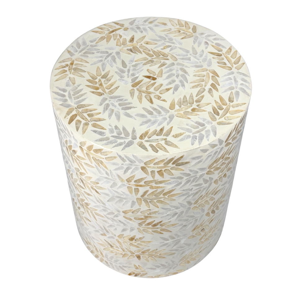 ม้านั่งแบบฝังลายใบไม้สีขาวและสีทองโต๊ะแบบเน้นตกแต่ง MDF ทำด้วยมือสำหรับห้องนั่งเล่นหรือห้องนอน