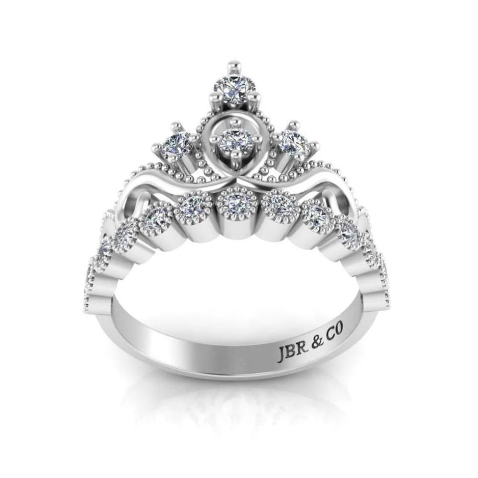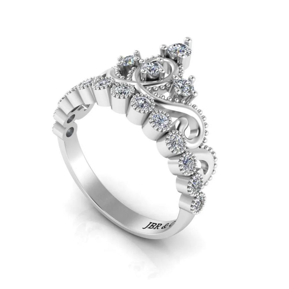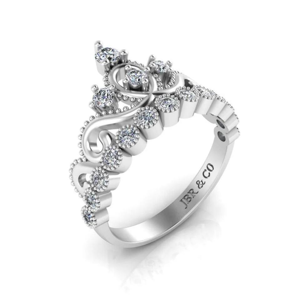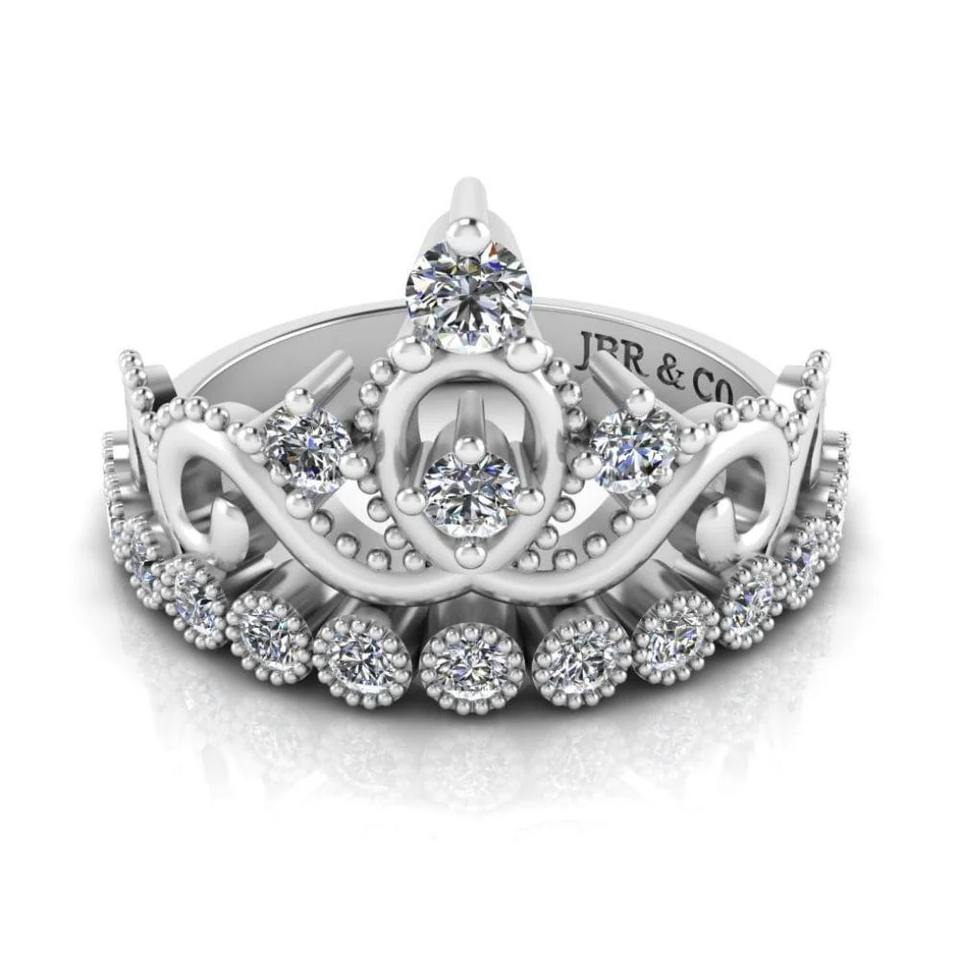 แหวนหมั้นเพชรเม็ดกลมหรูหราสำหรับผู้หญิงแหวนหมั้นมงกุฎเจ้าหญิงสีเงิน925สำหรับงานแต่งงาน