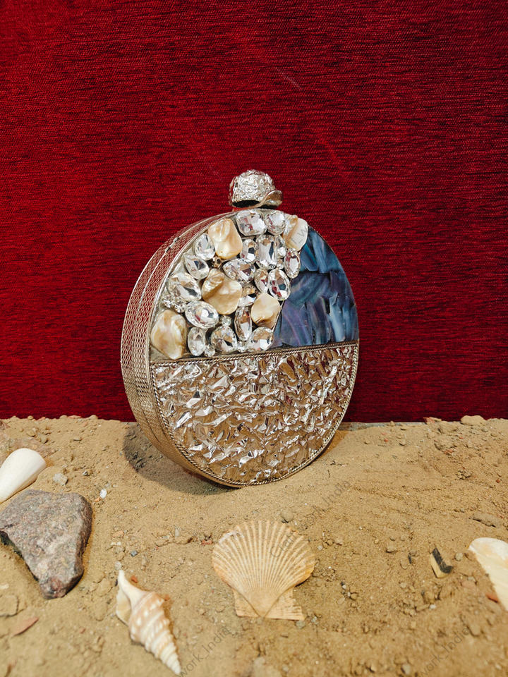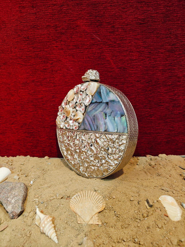 กระเป๋าคลัทช์ทรงกลมหรูหราประดับมุกเปลือกหอย งานแฮนด์เมด โครงทองเหลือง สำหรับงานเลี้ยงกลางคืน งานแต่งงาน ดีไซน์เนอร์ กระเป๋าถือเปลือกหอยสำหรับผู้หญิง