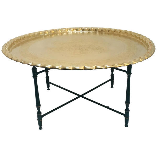 โต๊ะกาแฟโลหะพับได้แบบโมร็อกโกฐานโต๊ะกาแฟทรงกลมหรูหรา