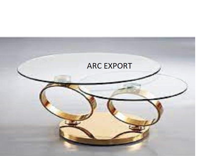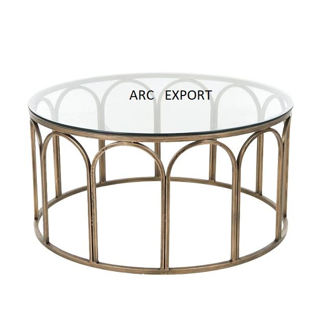 ท็อปกระจกทรงกลมหรูหราพร้อมขาตั้งโลหะขนาดใหญ่ตั้งโต๊ะสีทองโต๊ะออกแบบบ้านแบบทันสมัยโต๊ะกลางโต๊ะดีไซน์เนอร์ล่าสุด